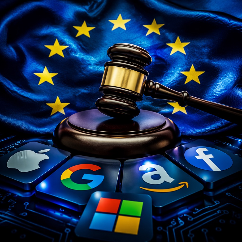 عبرت غرامات الاتحاد الأوروبي ضد Google و Apple و Meta لانتهاكات مكافحة الاحتكار والمنافسة حوالي 6 مليارات يورو (7 مليارات دولار) منذ بداية 2024. تم تغريم X بـ 120 مليون يورو في ديسمبر 2025 — أول غرامة بموجب Digital Services Act. أبريل 2025 قدم النتائج الرسمية الأولى لعدم الامتثال بـ DMA ضد Apple (steering App Store) و Meta (إعلان “ادفع أو اقبل”).